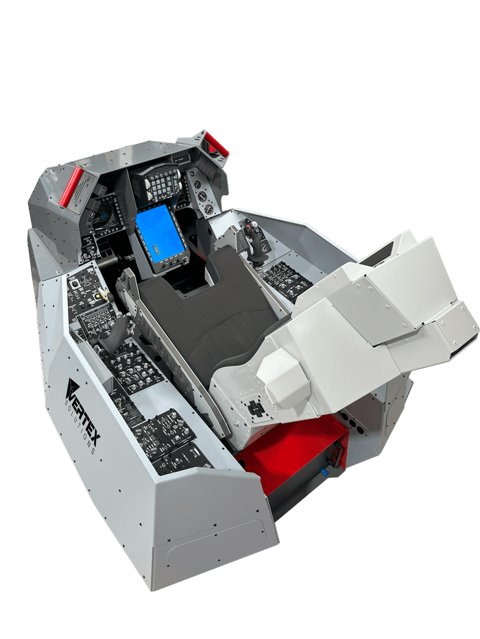 Introducing the Vertex Solutions MXR F-16 Reconfigurable Mixed Reality Fighter Trainer, a pioneering advancement in pilot training technology designed to blend the digital with the tangible for an unmatched immersive experience. Our Mixed Reality (MR) system integrates virtual environments with the real world, offering trainees a high-fidelity simulation with an interactive cockpit, realistic force feedback controls, and true-to-life responses. Tailored for adaptive scenarios, it provides real-time feedback and analytics for comprehensive evaluation and enhancement. Read below how our F-16 MR Trainer can revolutionize your flight training program.
